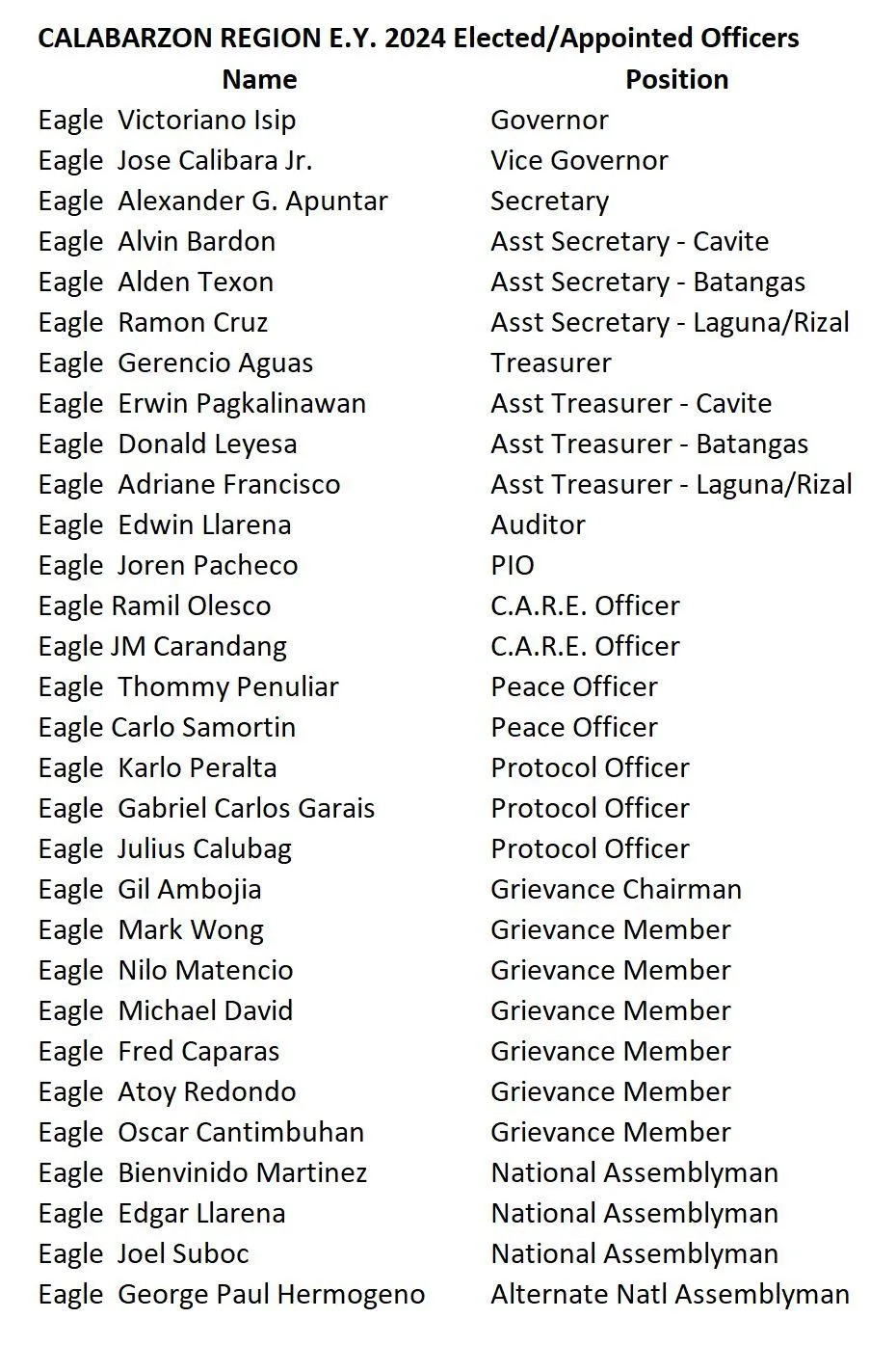 TFOE(PE) CALABARZON REGION